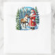 Santa Claus and Reindeer in a Snowy Forest Square Sticker