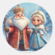 Santa Claus and Snow Maiden Celebrating Christmas Classic Round Sticker