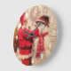 Santa claus and snowman in snowfall large clock