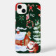 Santa Claus and the Snowman | Dark Tree Background iPhone Case