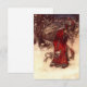 Card featuring Arthur Rackham’s illustration Santa Claus (1907). A red robed Santa Claus carries a bag of Christmas presents in a snowy wood. Elves fly by his side. A jolly gift for Christmas!