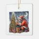 Santa Claus at Night with Tree & Gifts Customized Ceramic Ornament