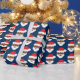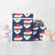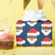 Santa Claus Christmas wrapping paper with a pattern of brown-skinned Santa Claus faces on a blue background. Simply choose your size, add it to your cart, and have a very merry Christmas!