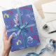 Santa Claus Candy Cane Pattern Blue Christmas Wrapping Paper