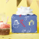 Cute and festive Santa Claus Candy Cane Pattern Blue Christmas wrapping paper. Blue background with "Ho Ho Ho!", Santa Claus, present, candy cane pattern.