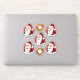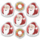 Set of seven cut-vinyl stickers with an illustration of a happy smiling Santa Claus with a red hat, on a red background; five stickers of Santa and two stickers with a Christmas wreath; with a customizable text template for your name or message