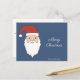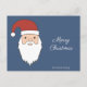 A postcard with a Santa Claus head and its red hat on a midnight blue background and customizable texts "Merry Christmas", family name and a message on the back. A little attention to send to your family and your friends for the end of year holidays. You can also use it in business and send it to your customers!