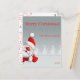 Christmas postcard with Santa Claus on grey background. Winter tree and snowflake.