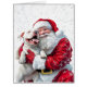 "La magie de Noël est une queue de chien qui traîne et le rire de Père Noël" et une joyeuse illustration du Père Noël qui étreignait son joyeux petit chien blanc pitbull.