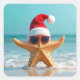 Santa Claus Hat On a Starfish Square Sticker