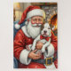 Santa Claus Holding Bull Terrier Christmas Art Jigsaw Puzzle