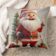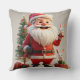 Santa Claus Holding Present with Rabbits Throw Pillow