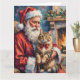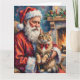 Santa Claus Holding Siberian Cat Christmas Art Card