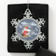 Santa Claus in a Helicopter Snowflake Pewter Christmas Ornament