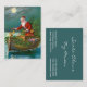 A beautiful vintage business card featuring Santa at night in a boat filled with toys.