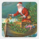 Beautiful vintage stickers featuring Santa at night in a boat filled with toys.