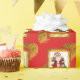 Beautiful Christmas wrapping paper in red colour and golden fringes with Santa Claus in golden frame wishing "Merry Christmas" .You can personalize text as well you prefer.