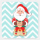 Santa claus in red pyjamas holding a mug square sticker