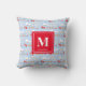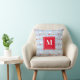 Santa Claus is Coming w Reindeer Monogram V3 Red Throw Pillow