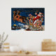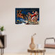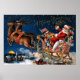 Decorate your wall with a charming vintage Christmas poster featuring Santa Claus riding his sleigh full of toys above a winter town.