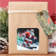 Santa Claus Joyfully Skiing on Snowy Mountains Square Sticker