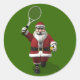 Santa Claus Playing Tennis Classic Round Sticker