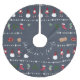 Decorative skirt for the base of the Christmas tree. Printed design featuring Santa Claus, gifts, stockings, holly, and snowflakes on a dark background. Add a fun touch to your tree with this skirt and create a beautiful ensemble with gift wrapping paper from the same design collection. Customizable with your family name or any text you wish.