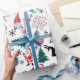 Santa Claus Reindeer Pine Trees Mittens Wrapping Paper