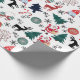 Santa Claus Reindeer Pine Trees Mittens Pattern Wrapping Paper