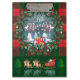 Hello Winter Holiday Calligraphy Lettering, 20XX Happy New Year and Merry Christmas Holiday Event. Winter Fairy Tale Night, Fantasy Snowy Forest, Santa Clouse is coming... Santa Claus riding a sleigh in led by reindeers Snowman with gifts, Snowy Landscape with Santa, Reindeer, falling snow, snowflakes, snowflakes ornaments Nordic, Celtic, Scotland pattern red berry, green ornaments. Beautiful Illustration for Office & School > Stationery > Notebooks & Writing Pads > Clipboards. Trendy Gift.