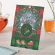 Celebrate the season with the Pedestal Sign - "Hello Winter" Holiday Calligraphy Lettering & Monogram. This beautifully designed sign features elegant calligraphy with a personalized touch, perfect for your Holiday Event. The design captures a Winter Fairy Tale Night with Santa Claus riding his sleigh, led by reindeer. Snowflakes, Nordic and Celtic patterns, and red berry and green leaf Christmas wreath ornaments add a festive, traditional feel.
