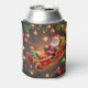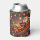 Santa Claus Riding Sleigh with a Reindeer Can Cooler