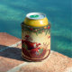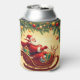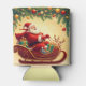 Santa Claus Riding Sleigh with a Reindeer Can Cooler