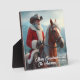 This fun Christmas design shows Saint Nicholas in a red cowboy hat riding a beautiful palomino horse.