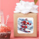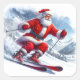 Santa Claus Skiing Down a Snowy Mountain Slope Square Sticker