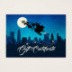 Santa's Sleigh illustration: A ride in the night over the skyline of a city with the night sky and the bright moon and stars in the background.