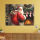 This acrylic painting portrays a classic, heartwarming depiction of Santa Claus in a festive holiday setting. Santa stands in front of a glowing fireplace adorned with a vibrant garland of greenery, holly, and red berries. Red-and-white stockings hang neatly from the mantel, creating a cozy and cheerful atmosphere. A large wreath, decorated with a bright red bow and holly, adds to the holiday charm.