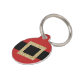 Modern Santa Claus Suit Buckle in faux gold glitter on a pet ID tag charm with customized contact information and name printed on the back.