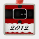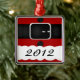 Ornament design features a close up of Santa's famous red Santa Claus suit. Design features black shiny buttons, black shiny belt with silver coloured buckle on the red suit background. The design also features a white, puffy area to look like the fur around the bottom of Santa's suit. Inside the white area is a place to personalize your ornament with either the year, name or text of your own in black font.