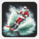 Santa Claus Water Skiing on a Festive Winter Day Square Sticker