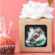 Santa Claus is joyfully water skiing on a vibrant wave, showcasing his adventurous spirit. Dressed in his classic red suit and sunglasses, he embodies holiday cheer while embracing a fun, unexpected activity against a dark background.
