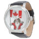 father christmas visiting the country in North America proudly waving the maple leaf banner