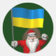 Santa Claus With Ensign Of The Ukraine Classic Round Sticker