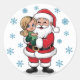 Santa Clause Hugging a Girl with Snowflakes Classic Round Sticker