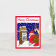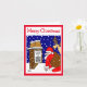 Happy Christmas message with Santa Clause and a QR Code on a chimney. Funny Christmas Card with sign that asks Father Christmas to check in by scanning a QR code. Covid theme Christmas card. Add your own message inside.