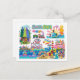 Santa Cruz Illustrated Map Boardwalk Beach Surfing Postcard