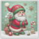 In a festive setting, a jolly Santa Claus dressed in his classic red outfit stands, playful and cheerful.