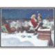 Santa delivering armload of books on Christmas Eve, famous illustration by N.C. Wyeth.