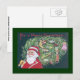 Santa Claus is carrying a Christmas tree over his shoulder in this vintage postcard from 1907. The tree is decorated with a teddy bear, doll, sled, horn, toy train, candles and garland.
