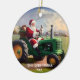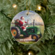 Santa Driving a Green Tractor Ceramic Ornament